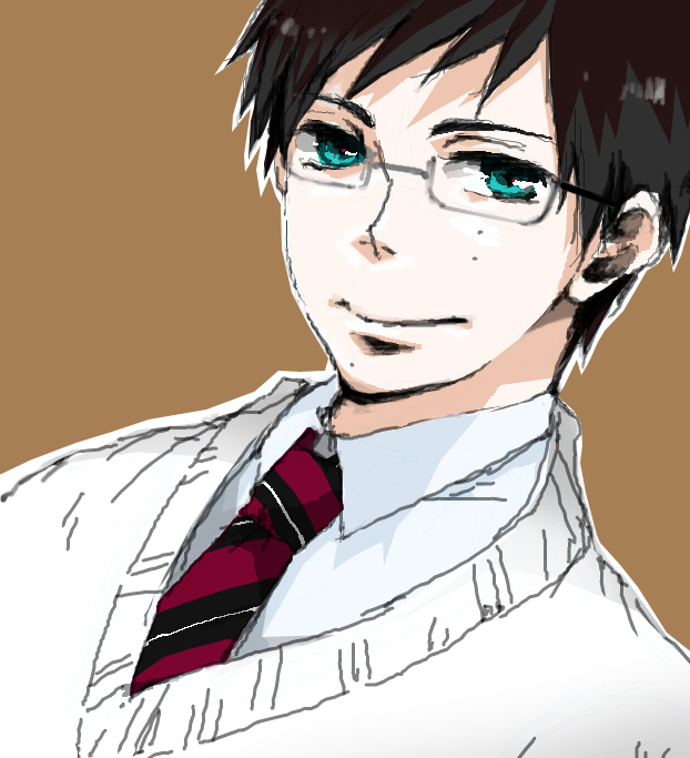 冬コミ発行予定の「奥村兄弟+藤本獅郎親子アンソロジー」に口絵イラストとして参加させていただきました。
